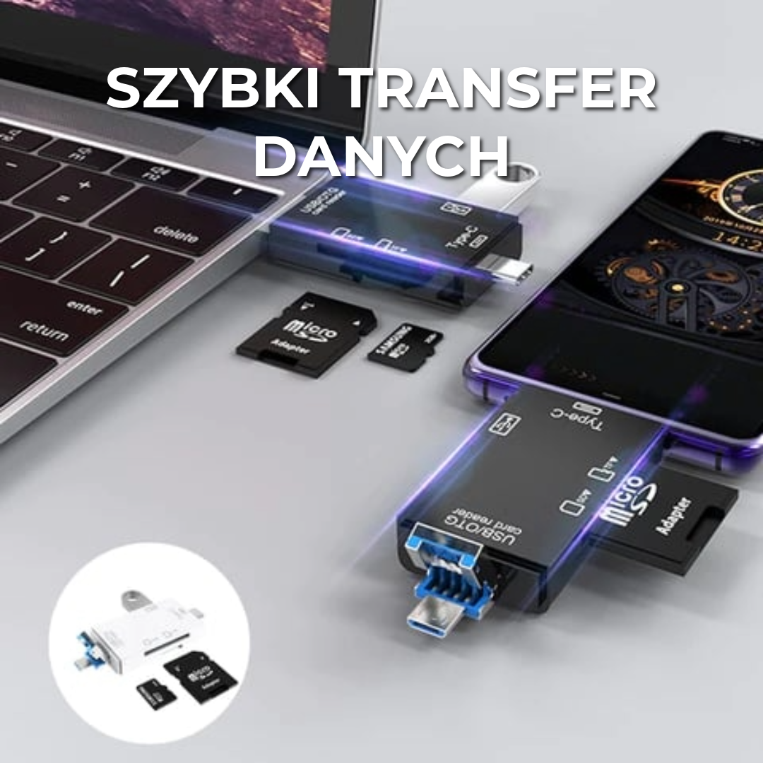 Ułatw sobie życie dzięki czytnikowi kart 6-w-1 – to najlepsze rozwiązanie dla szybkiego, efektywnego i bezpiecznego przesyłania danych! Niezależnie od tego, czy przenosisz zdjęcia, filmy czy ważne dokumenty, to kompaktowe i przenośne urządzenie zapewnia bezproblemową łączność między kartami pamięci a wszystkimi Twoimi urządzeniami.