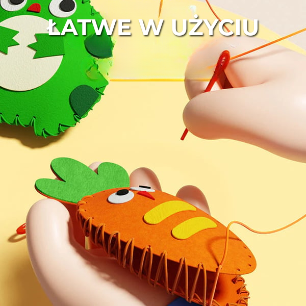 Wykonany z trwałego filcu i miękkich włókien bawełnianych, dzięki czemu zestaw jest bezpieczny dla małych rączek i przyjazny dla środowiska. Zawiera tępe, przyjazne dla dzieci igły, które zostały specjalnie zaprojektowane, aby szycie było bezpieczne dla dzieci!