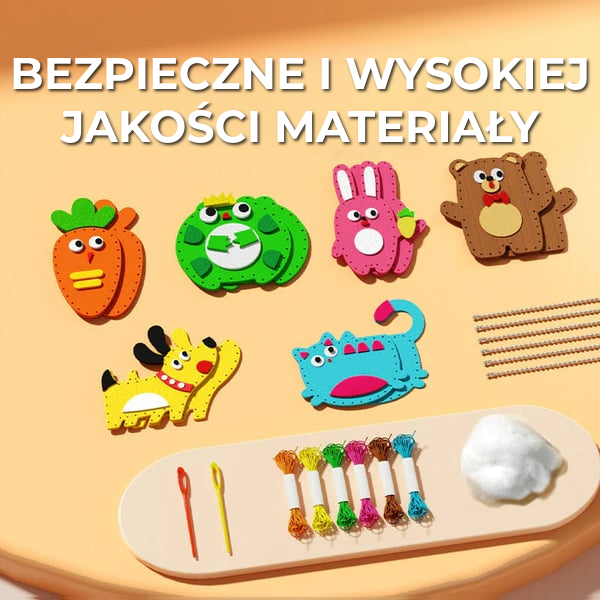 Zaczarowane wzory zwierząt i kolorowe nici sprawiają, że szycie staje się magicznym doświadczeniem dla młodych artystów.