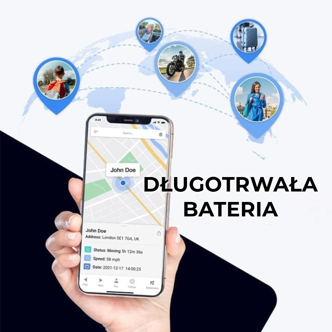 Silna bateria litowa zapewnia długie działanie trackera. Gdy poziom naładowania spadnie poniżej 20%, otrzymasz automatyczne powiadomienie o konieczności ładowania. Zawsze gotowy do działania!
