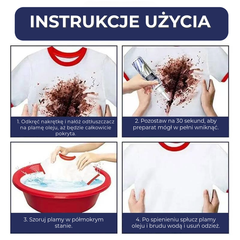 Idealny do plam powstających podczas gotowania, podczas aktywności na świeżym powietrzu lub podczas wydarzeń towarzyskich, oferując kompletne rozwiązanie dla każdej sytuacji.