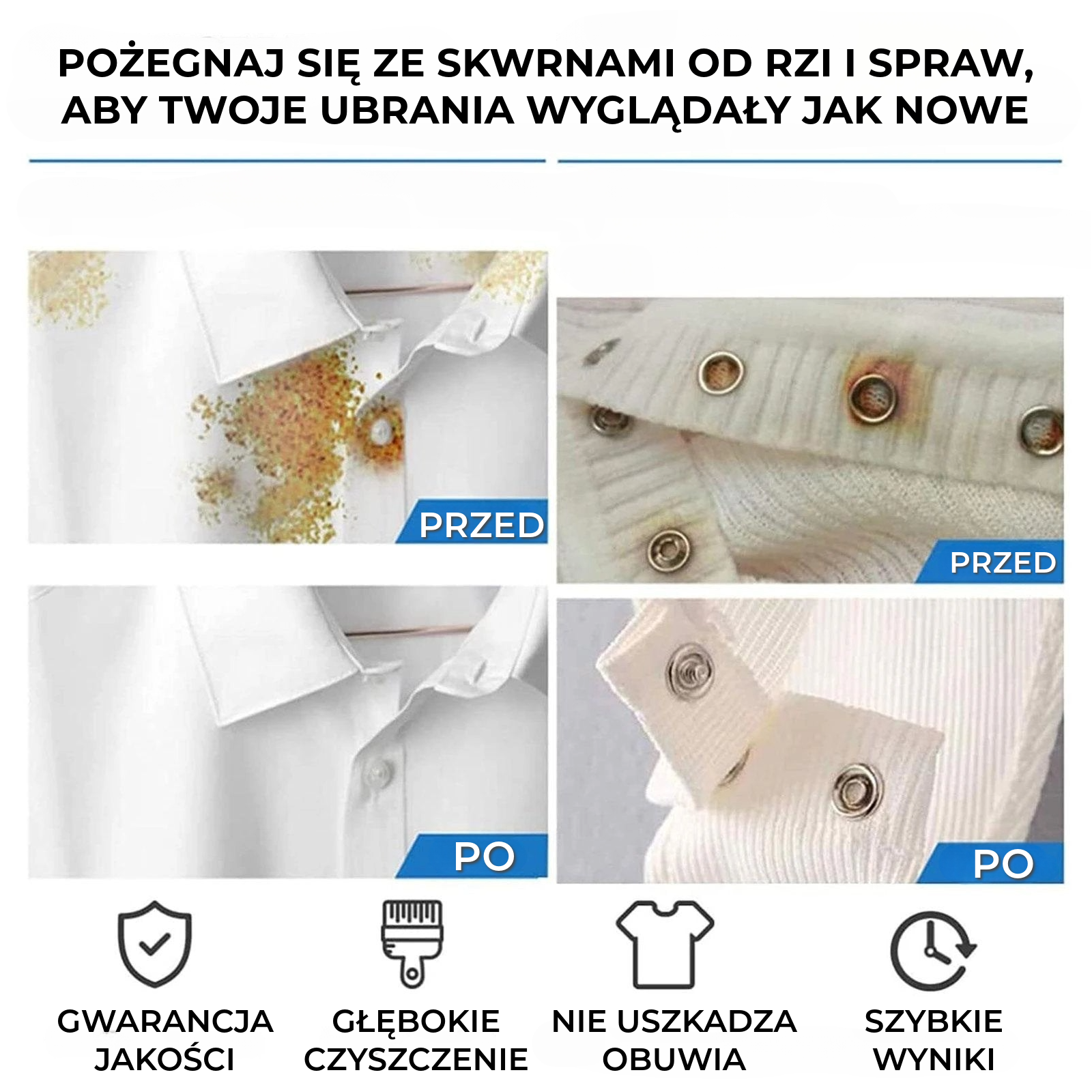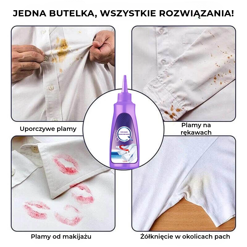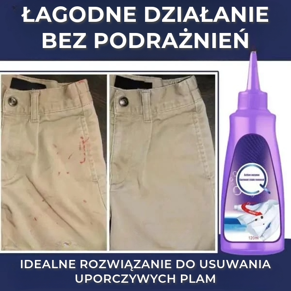 Usuwa plamy, nie uszkadzając materiału, dzięki czemu twoje ubrania pozostają świeże i żywe.