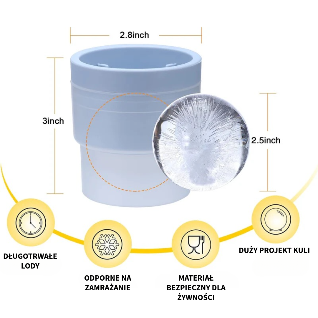 Produkuje 2,5 calowe kulki lodu, które topnieją powoli