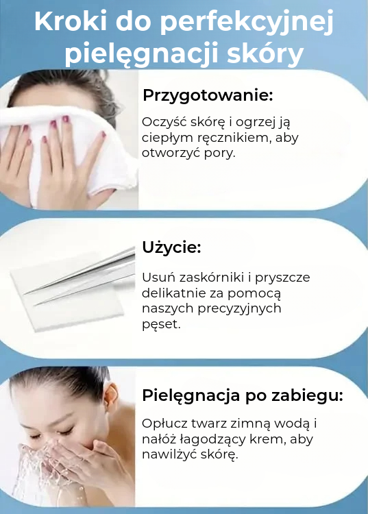 Te profesjonalne pęsety są idealne do usuwania zaskórników, zapewniając najwyższą precyzję i wygodę. Niezależnie od tego, czy masz problem z uciążliwymi zaskórnikami, czy po prostu chcesz utrzymać skórę w czystości, PrecisionTweez™ to narzędzie, które warto mieć.