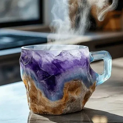 Każdy kubek jest ręcznie wykonany z naturalnych minerałów, takich jak ametyst, kwarc i agat. Żaden z kubków nie jest taki sam, co sprawia, że każdy z nich jest wyjątkowym dziełem sztuki.