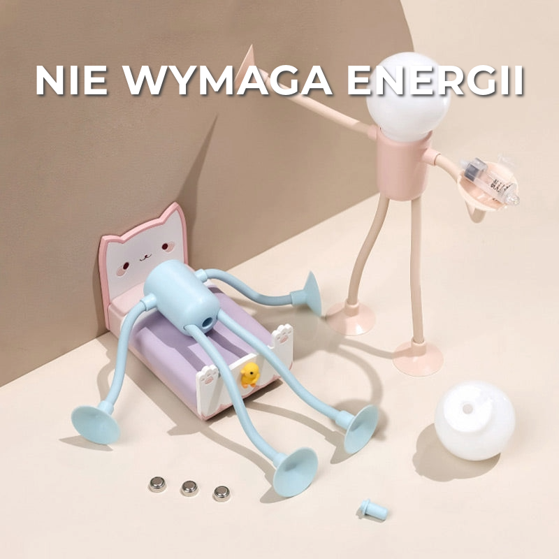 Ta wszechstronna lampa może być umieszczana w różnych pozycjach dzięki swojej mocnej przyssawce. Idealna zarówno dla dzieci, jak i dorosłych, nadaje unikalnej atmosfery i ciepła do każdego pokoju.