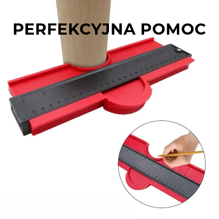 Dzięki tej linijce możesz łatwo mierzyć i kopiować skomplikowane kształty. To praktyczne narzędzie pomaga tworzyć precyzyjne wzory zakrzywień i kątów, co pozwala na cięcie elementów podłogi z milimetrową precyzją.