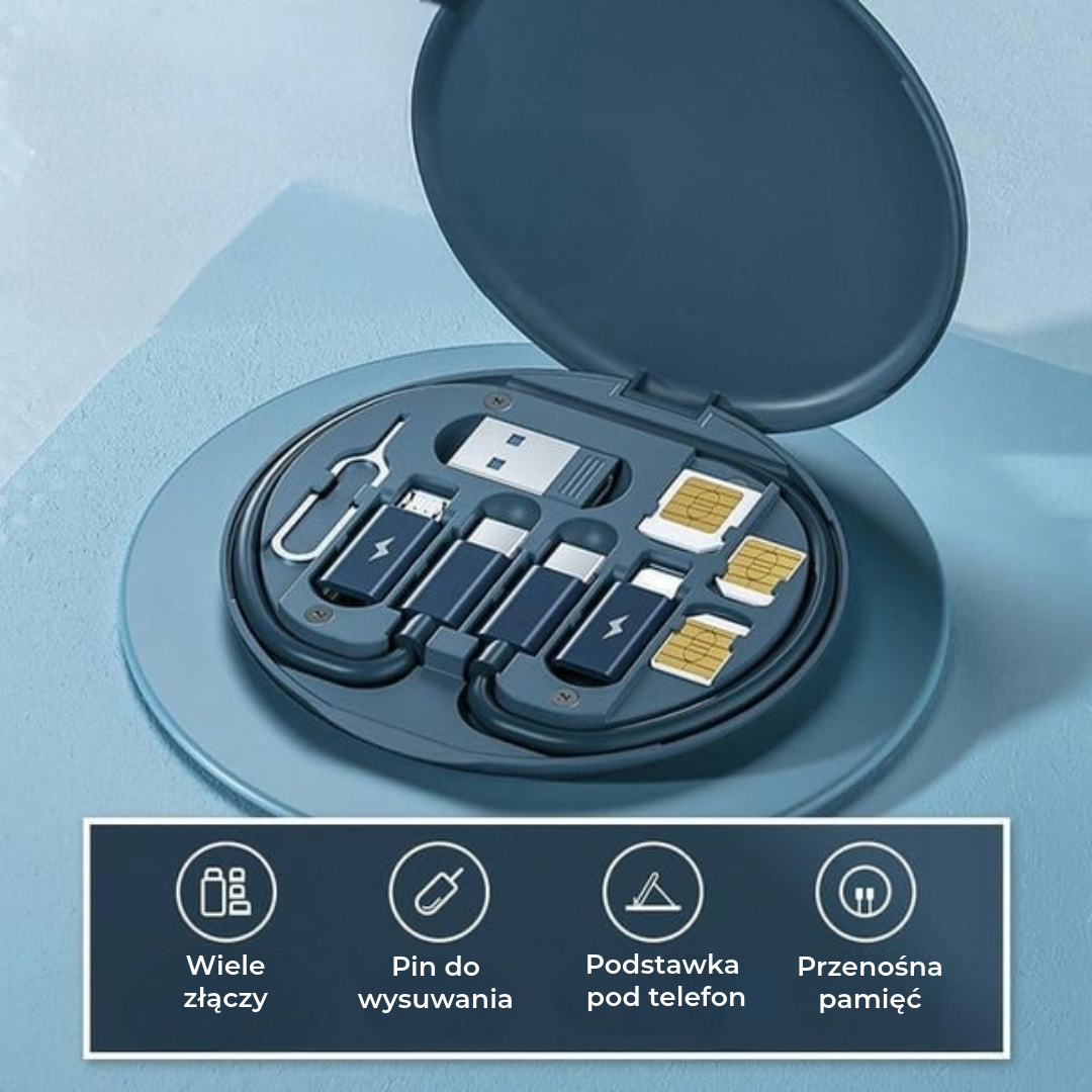 Niezależnie od tego, czy oglądasz film, prowadzisz wideorozmowę czy wymieniasz kartę SIM, to pudełko na kable 9-w-1 zawsze jest gotowe do działania. Wbudowana podstawka i pin do wysuwania karty SIM ułatwiają życie, a elegancki design podkreśla Twój styl. Poczuj wolność i wygodę na najwyższym poziomie!