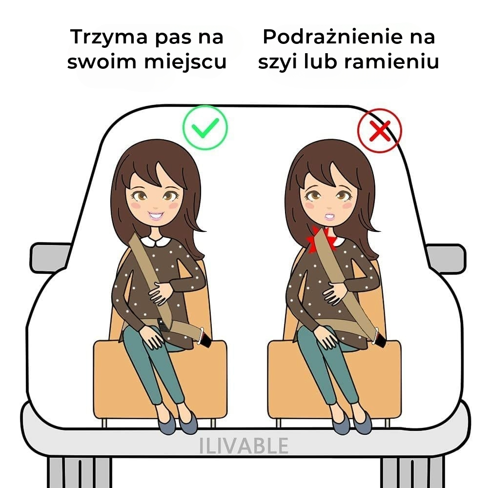 Koniec z podrażnieniami na szyi lub klatce piersiowej spowodowanymi ciasnymi pasami samochodowymi. Dostosuj pas do wygodnej, bezpiecznej jazdy.