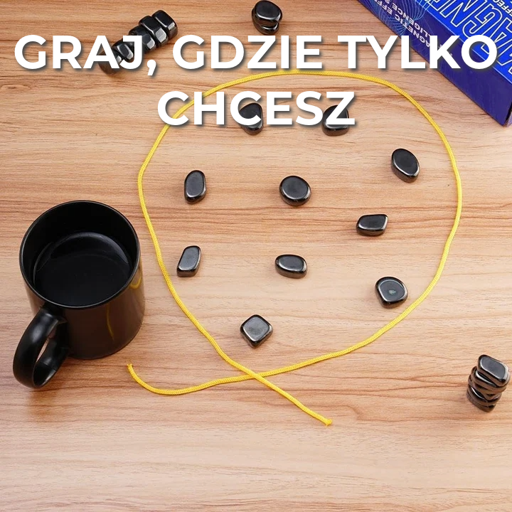 Magnetyczne kamienie mają miękką, luksusową teksturę i idealnie wyważoną wagę, dzięki czemu każdy ruch jest nie tylko strategiczny, ale także fizycznie satysfakcjonujący.