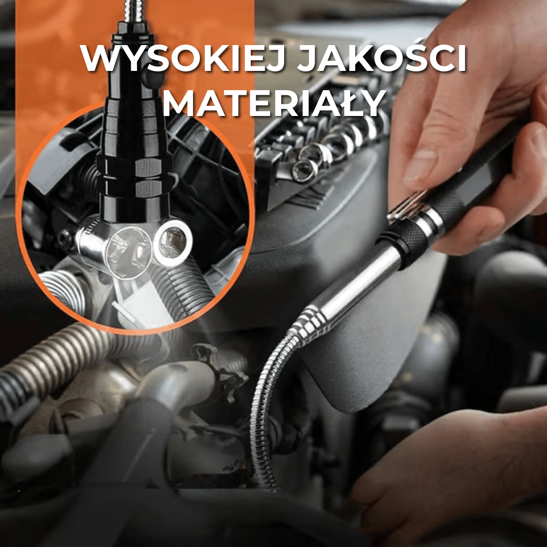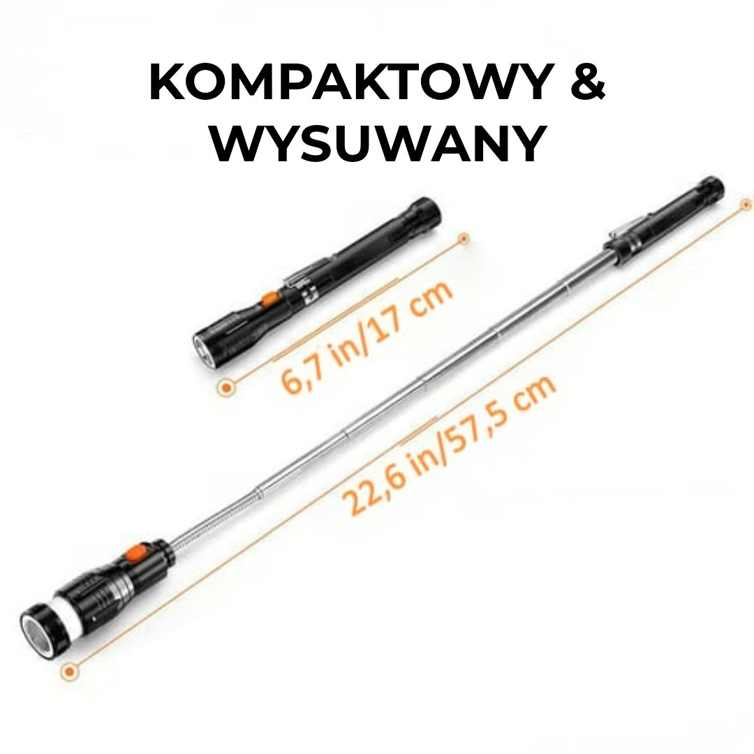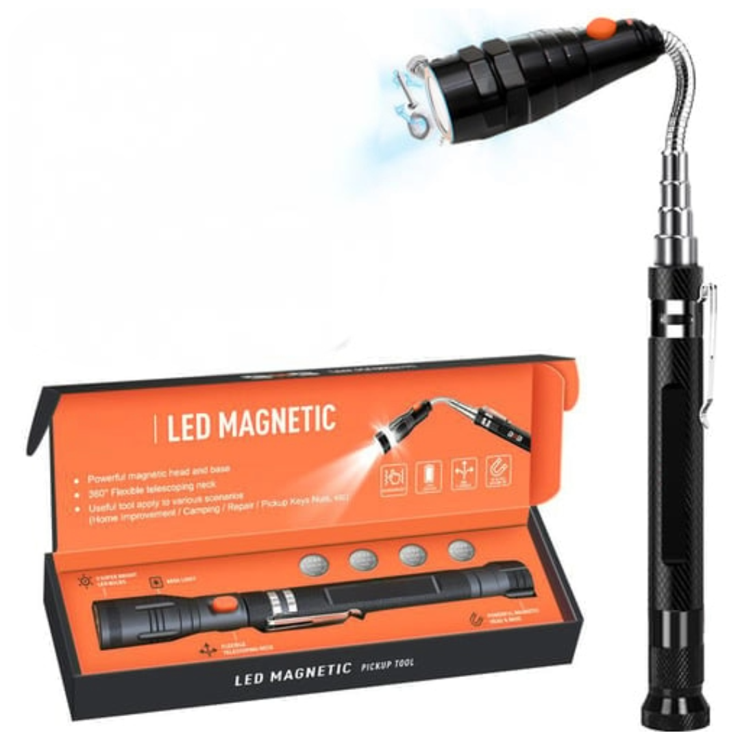 Nigdy więcej nie zgubisz śruby ani gwoździa! Dzięki silnej magnetycznej głowicy i podstawie bez trudu podniesiesz metalowe przedmioty z wąskich szczelin lub ciemnych zakamarków. Idealne do garaży, warsztatów lub na kemping.
