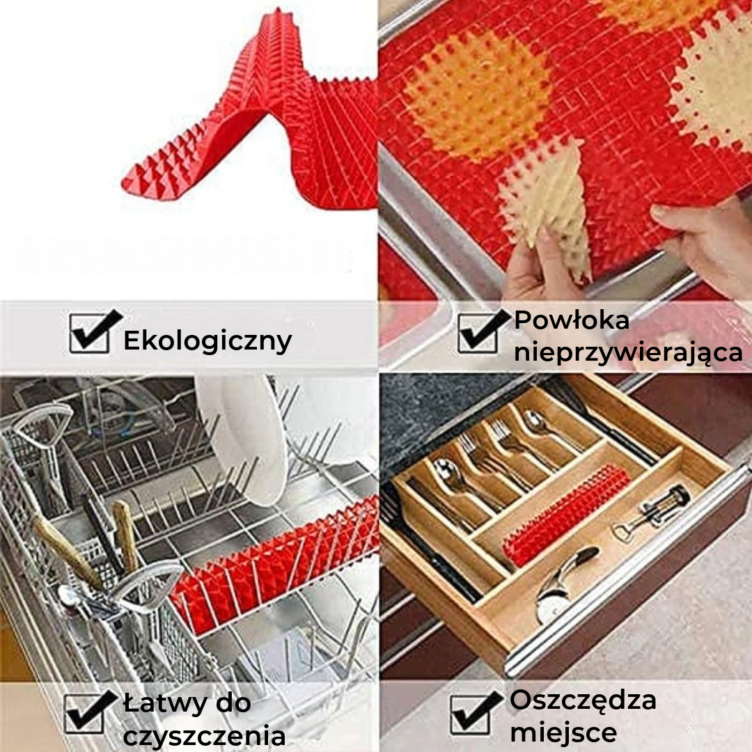Niezależnie od tego, czy w piekarniku, mikrofalówce, zamrażarce, czy zmywarce – ta mata poradzi sobie z wszystkim! Przytnij ją do odpowiedniego rozmiaru, zwiń w celu łatwego przechowywania i ciesz się trwałym silikonowym materiałem. Gotuj bez ograniczeń i w pełnej wolności!