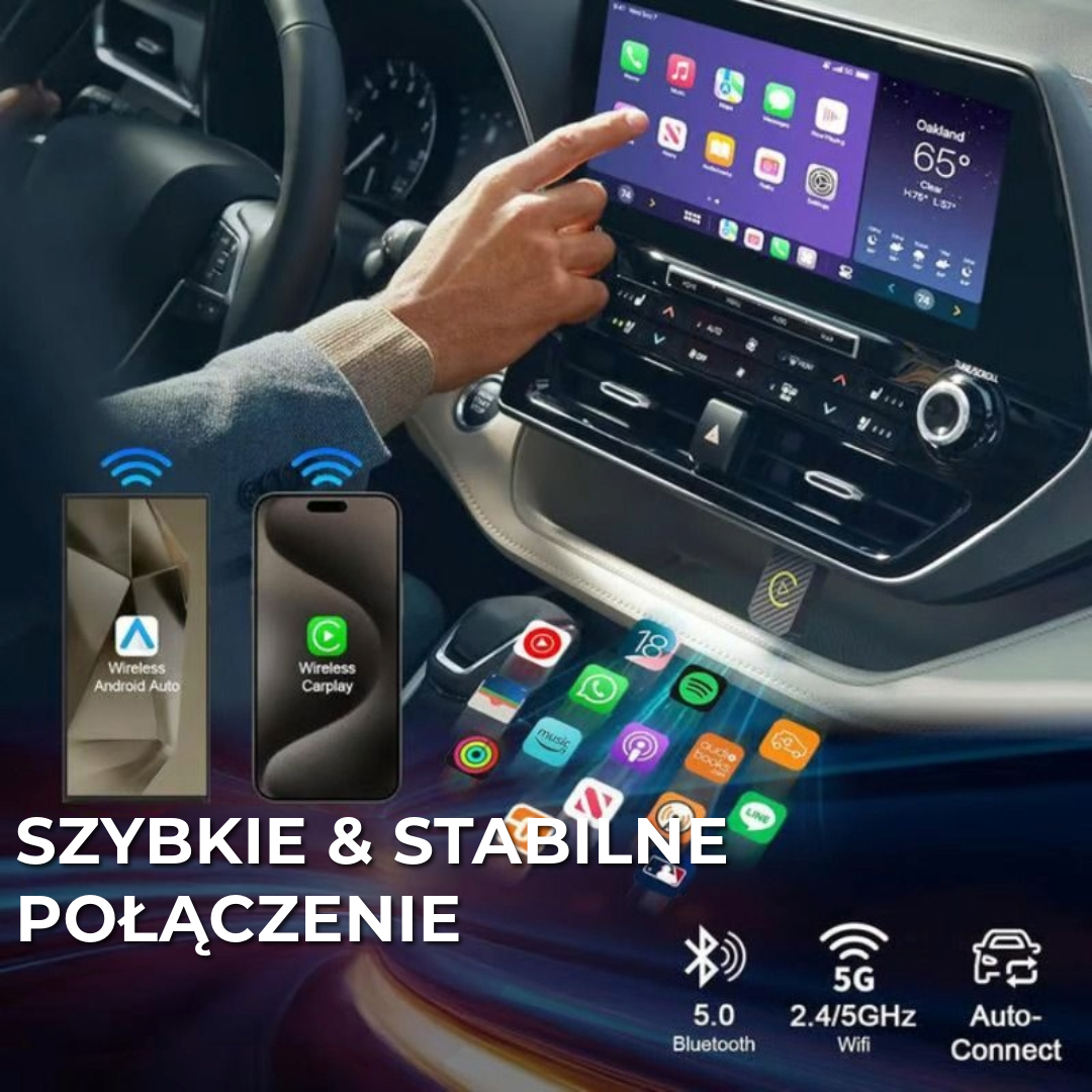 Koniec z plątaniną przewodów i ciągłym podłączaniem oraz odłączaniem telefonu. Mini Bezprzewodowy Adapter CarPlay przekształca przewodowe CarPlay lub Android Auto w całkowicie bezprzewodowe rozwiązanie, dzięki czemu jesteś zawsze natychmiast połączony.