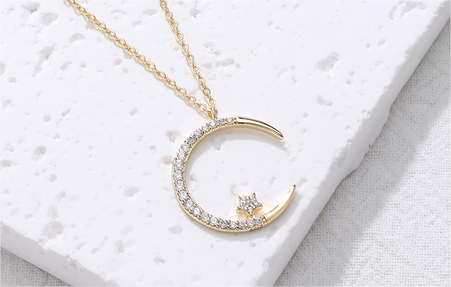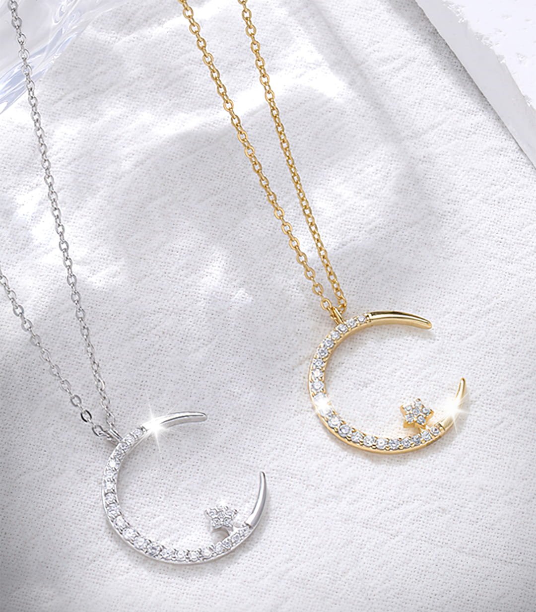 Idealne połączenie nowoczesnego designu i klasycznej elegancji – ten naszyjnik z motywem Księżyca i Gwiazd uchwyca magię gwiaździstego nieba, dodając Twojemu wyglądowi nutę tajemniczości i uroku.
