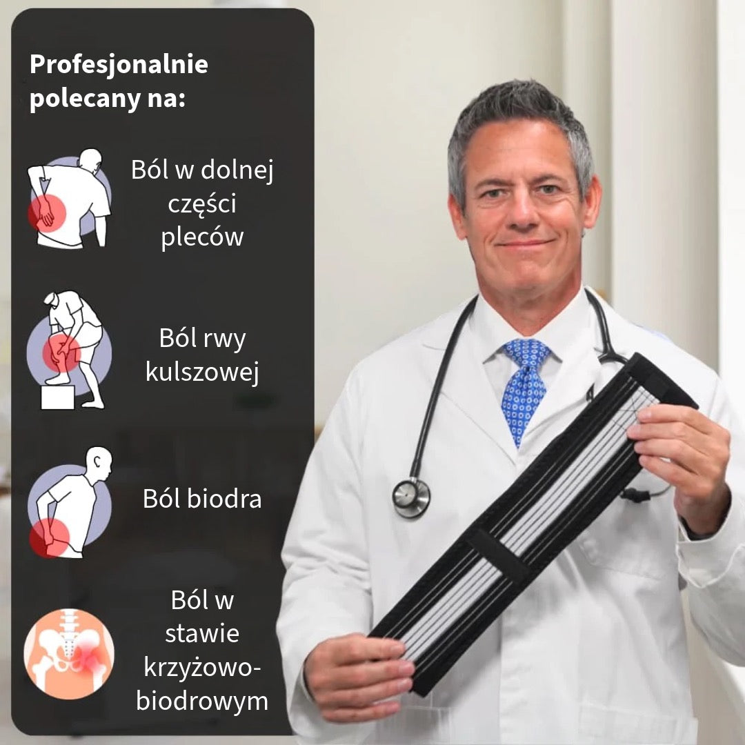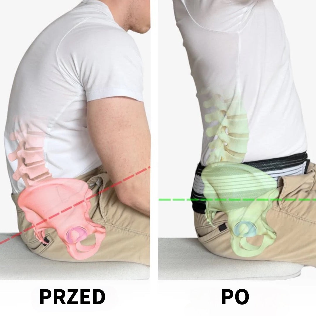 Orthoriem™ zapewnia naturalną ulgę w bólu przy rwie kulszowej i bólach dolnej części pleców, bez konieczności sięgania po szkodliwe leki. Dzięki ukierunkowanym strefom kompresji zmniejsza nacisk na dolny odcinek kręgosłupa i poprawia postawę. Smukła, regulowana konstrukcja sprawia, że jest wygodny i niewidoczny pod ubraniem – idealny do codziennego użytku.