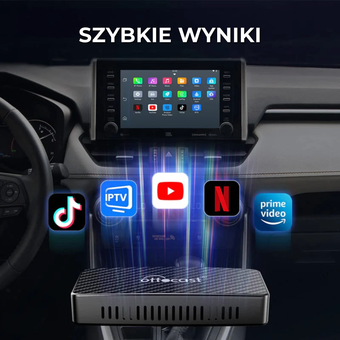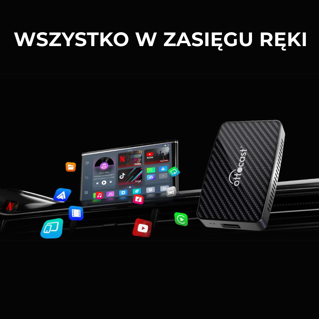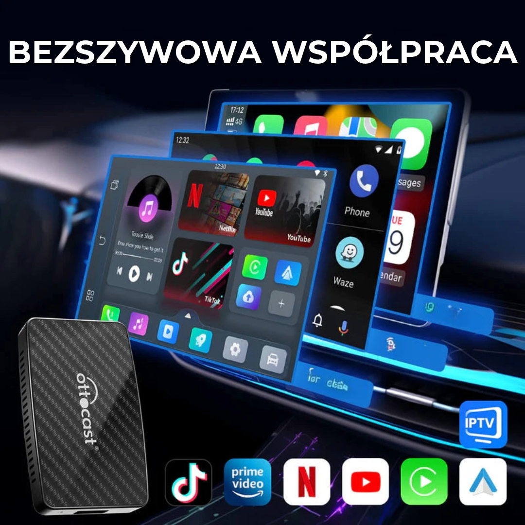 OTTOCAST™ oferuje bezpośredni dostęp do YouTube, Netflix, TikTok i więcej, oraz płynnie przełącza się między dzięki Apple CarPlay bezprzewodowego i Android Auto. Idealne do rozrywki, nawigacji i wygody bez użycia rąk. Idealne na długie podróże lub korki!