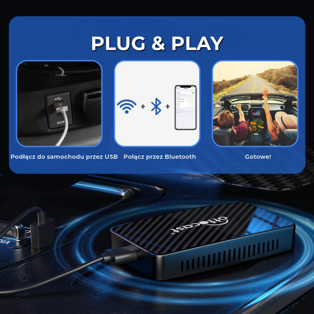 Bez względu na to, czy używasz iPhone'a, czy Androida, OTTOCAST™ Pro automatycznie rozpoznaje Twoje urządzenie i nawiązuje błyskawiczne połączenie. Koniec z kabelkami—100% bezprzewodowe dla maksymalnej wygody i bezpieczeństwa na drodze. Idealne dla całej rodziny!