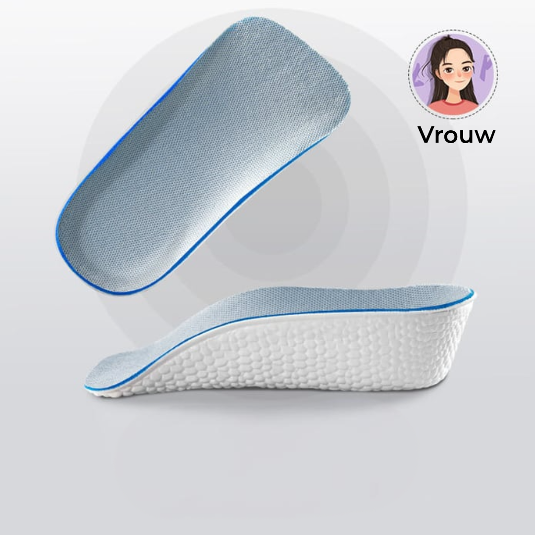 Te wkładki nie tylko zwiększają Twój wzrost, ale także zapewniają maksymalny komfort i wsparcie. Dzięki pełnemu podparciu łuku stopy poprawiają postawę oraz odciążają plecy i biodra. Miękki, amortyzujący materiał zmniejsza również nacisk na stopy.