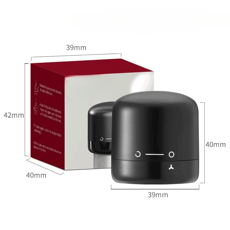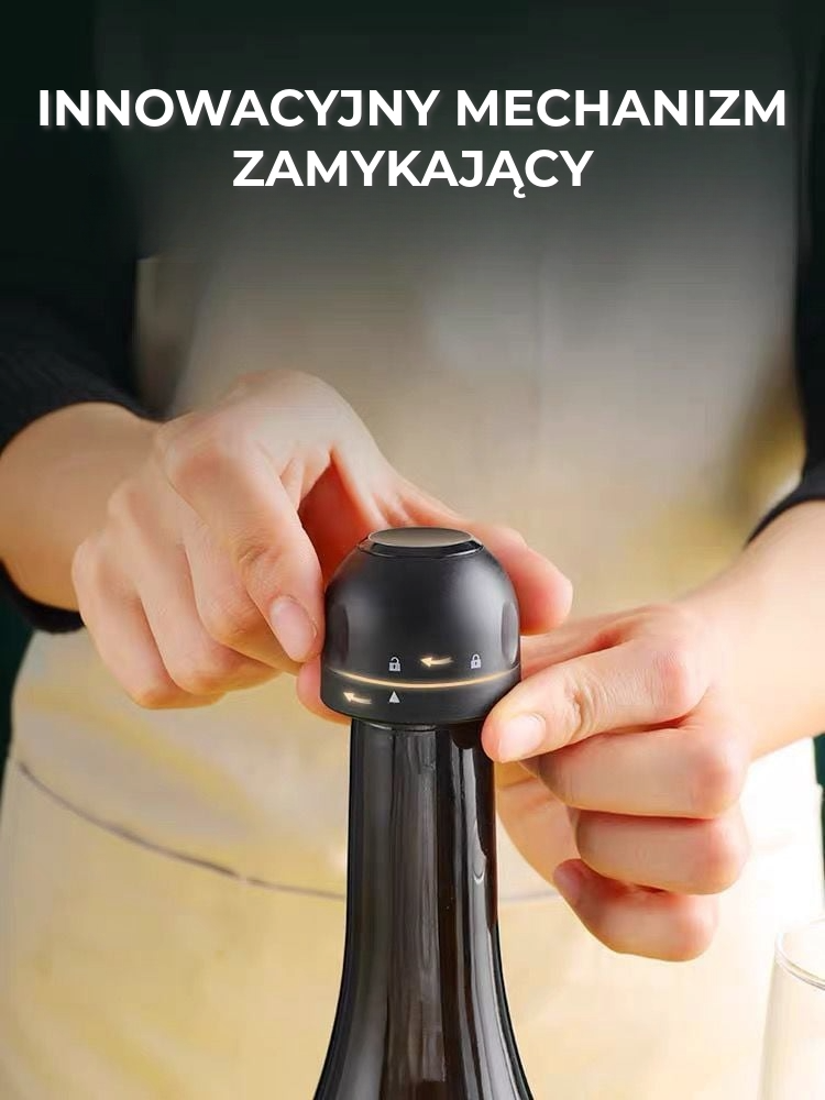 Dzięki prostemu mechanizmowi przyciskowemu zamknięcie butelki wina jest dziecinnie proste. wystarczy umieścić zatyczkę na butelce, nie są potrzebne żadne skomplikowane kroki ani narzędzia!