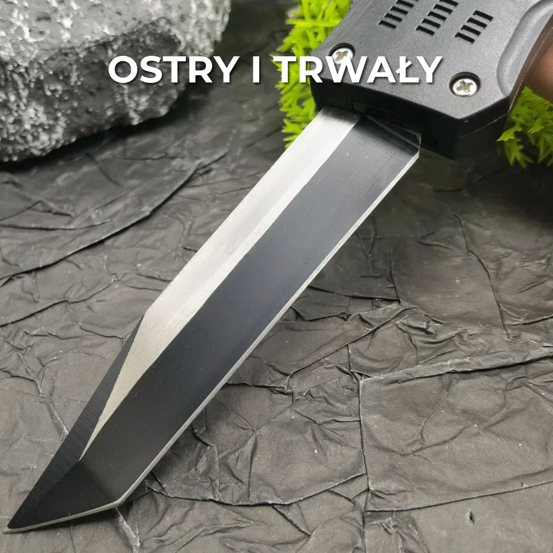 Ten nóż jest wykonany z wysokiej jakości stali nierdzewnej 440C z czarną powłoką tytanową, co sprawia, że ostrze pozostaje niezwykle ostre nawet przy intensywnym użytkowaniu. Dzięki twardości 58 HRC zachowuje ostrość nawet do 100 cięć bez odkształceń, a stylowy i wytrzymały design doskonale łączy siłę z elegancją.