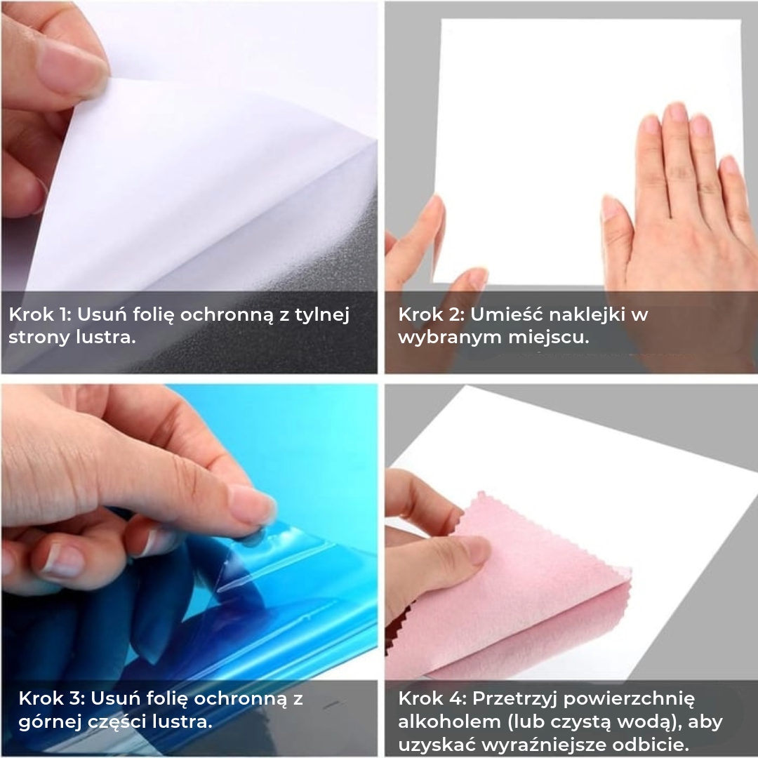 Prosto przyklej lustra na ściany, drzwi, szafy lub sufity, aby natychmiast odświeżyć każde pomieszczenie. Dzięki samoprzylepnej tylnej stronie, nie ma potrzeby wiercenia ani wkrętów – idealne do szybkich metamorfoz wnętrz!