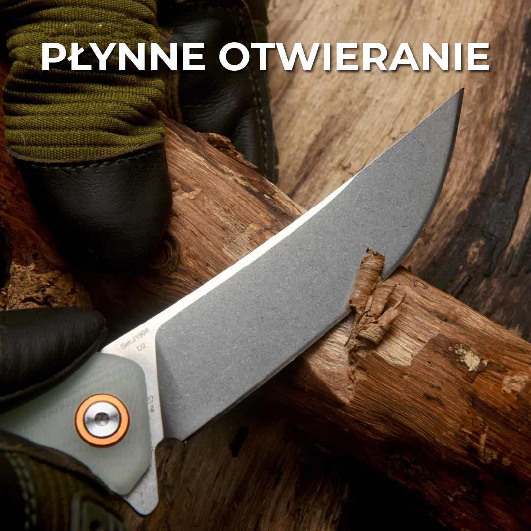 Dzięki ceramicznym łożyskom kulkowym i mechanizmowi flipper, nóż otwiera się błyskawicznie. Brak oporu, brak opóźnień – tylko natychmiastowa gotowość!