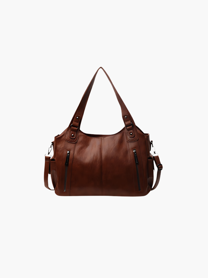 Ta vintage skórzana torebka to więcej niż tylko akcesorium – to ponadczasowy element, który łączy styl i funkcjonalność w sposób bez wysiłku. Dzięki klasycznemu kształtowi i wyszukanym detalom, ta torebka emanuje czystą elegancją, a przestronny układ sprawia, że zawsze będziesz zorganizowana.
