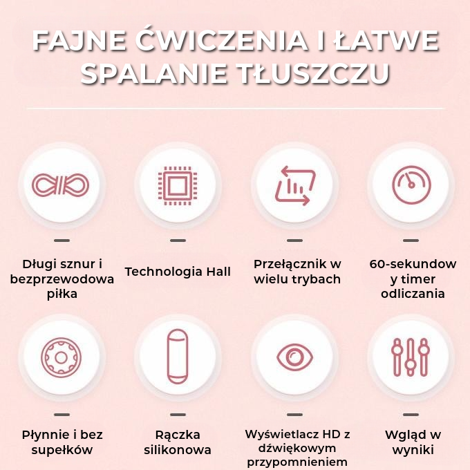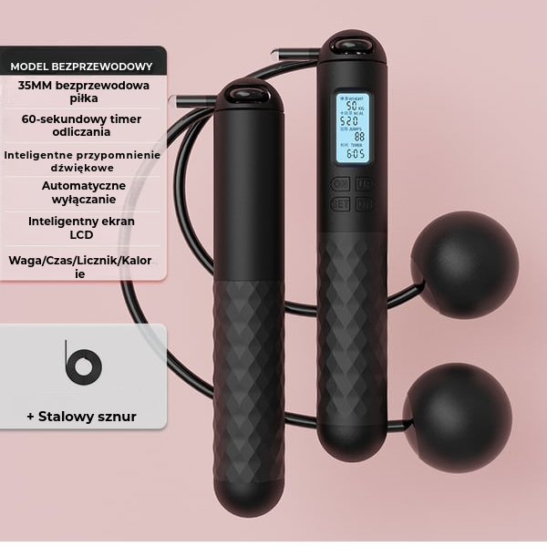 Pozostań zmotywowany! Wbudowany wyświetlacz LED HD dokładnie śledzi twój czas, wagę, liczbę skoków i spalone kalorie. Ustaw swoje cele fitness i natychmiast zobacz postęp.
