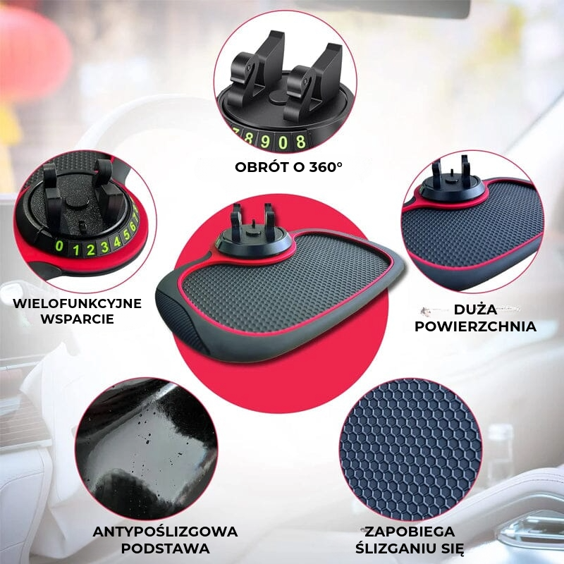 Ta mata pełni funkcję uchwytu na telefon, antypoślizgowej maty na deskę rozdzielczą oraz organizera. Idealna do bezpiecznego i zorganizowanego przechowywania telefonu, kart i wielu innych przedmiotów.