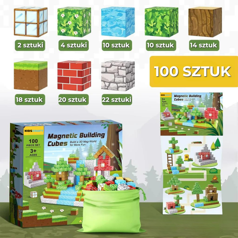 Za pomocą łatwego w użyciu magnetycznego systemu dzieci budują solidne konstrukcje w kilka sekund. Idealne dla małych rączek i gwarantowane bezpieczna zabawa!
